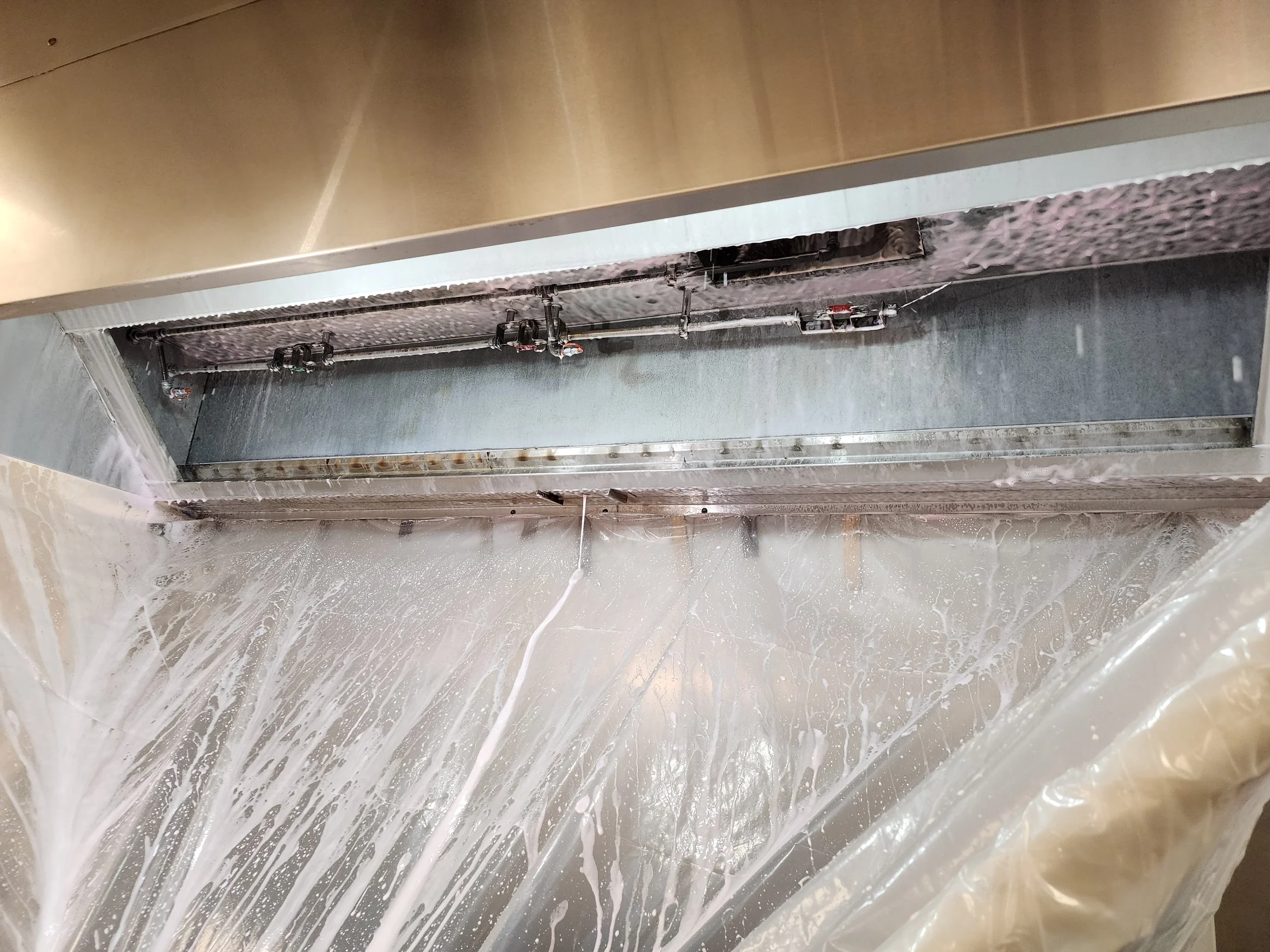 To maintain a safe and sanitary environment during the cleaning process, the surrounding kitchen area is carefully prepared in accordance with industry best practices and NFPA 96 guidelines: